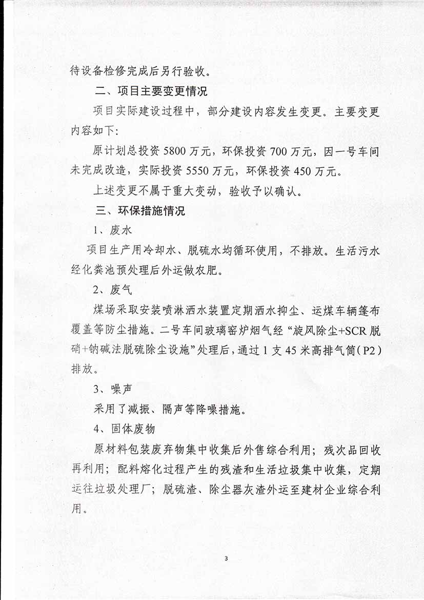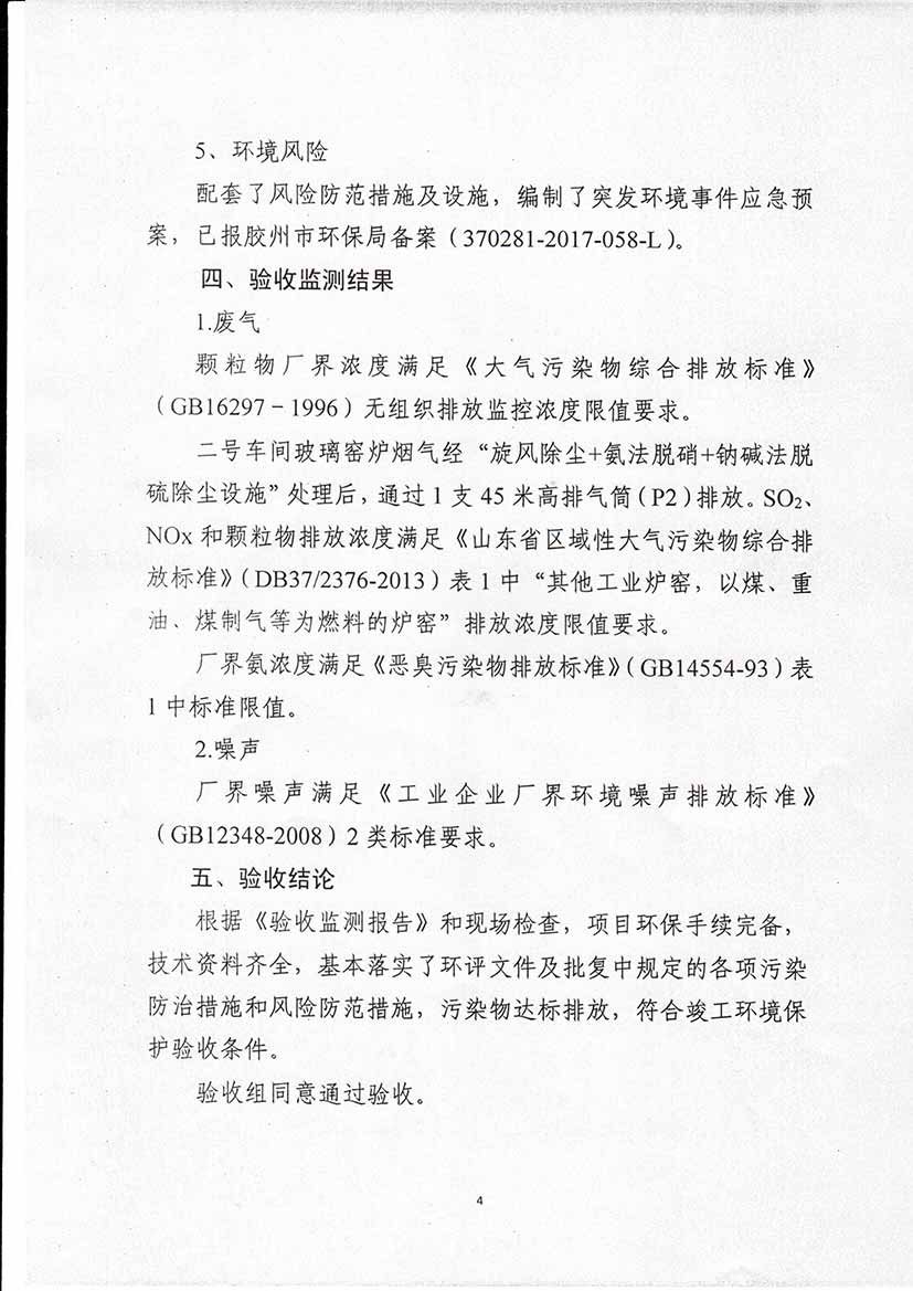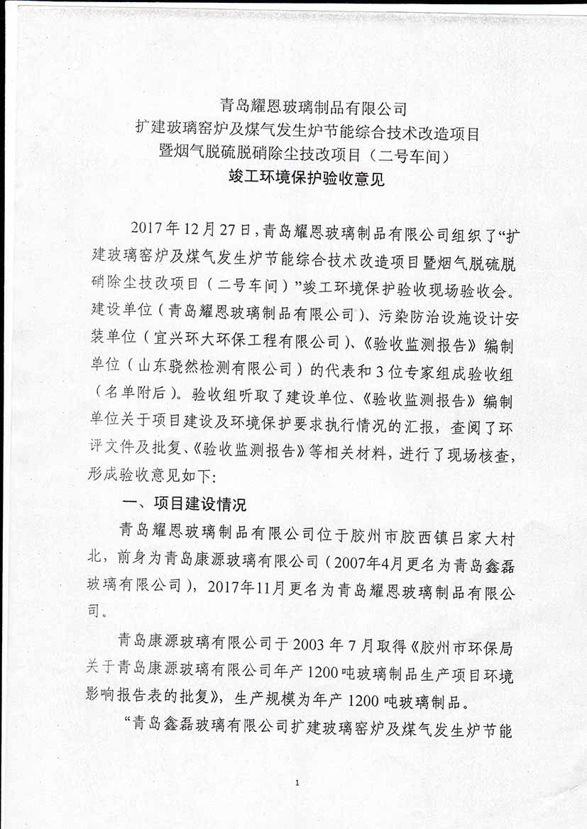青島耀恩玻璃制品有限公司驗收意見