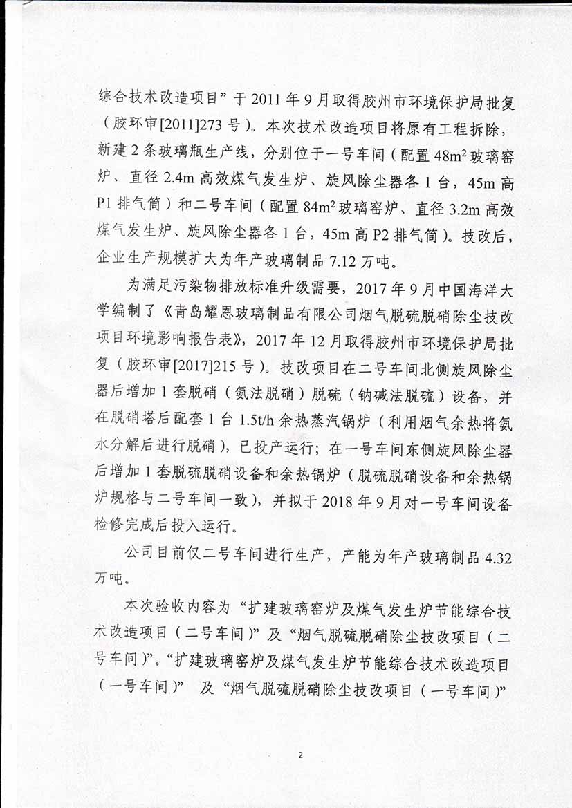 青島耀恩玻璃制品有限公司驗收報告